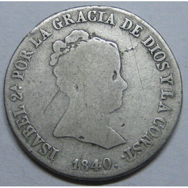 Moneda de España Reina Isabel II año 1840 valor 4 reales en plata ARG. ceca de Sevilla