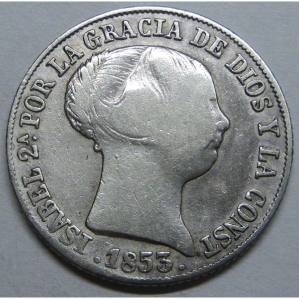 BC +Moneda de España Reina Isabel II año 1853 valor 4 reales en plata ARG. ceca de Sevilla, estrella de 7 puntas.