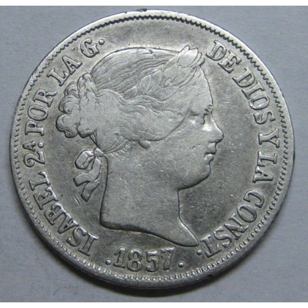MBCMoneda de España Reina Isabel II año 1857 valor 4 reales en plata ARG. ceca de Sevilla, estrella de 7 puntas.