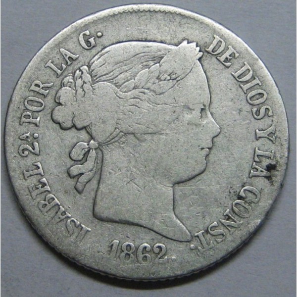 Moneda de España  Reina Isabel II año 1862 valor 4 reales en plata ARG. ceca de Sevilla, estrella de 7 puntas.