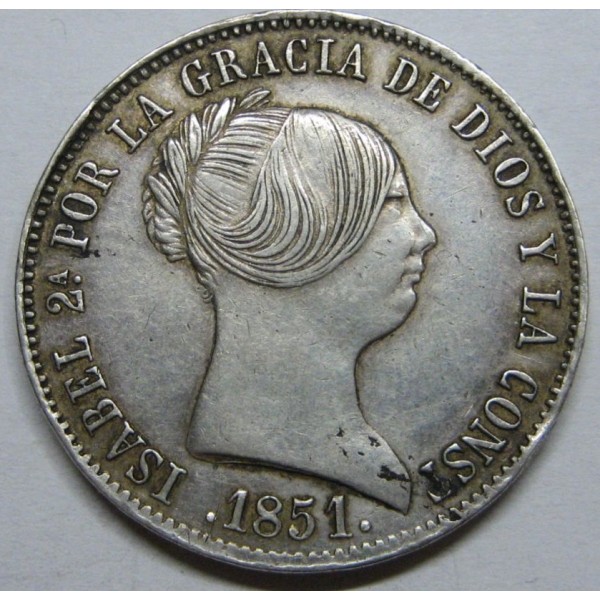(EBC)Moneda de España Reina Isabel II año 1851 valor 10 reales en plata ARG. ceca de Barcelona, estrella de 8 puntas.