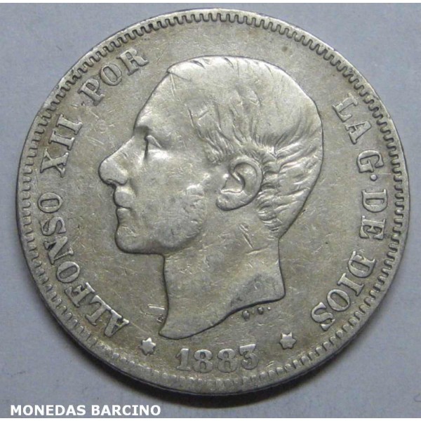 Moneda de España   año 1883   estrella  *  -- de  valor  2 pesetas  de plata Rey Alfonso  XII . peso 9,76gr. diametro 27mm. conservacion  BC  La moneda de la imagen fotografiada
