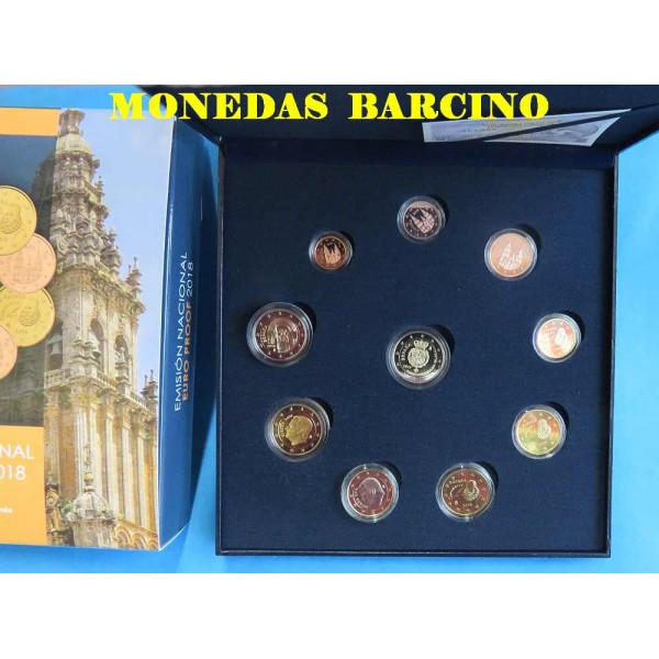 Coleccion de 10 monedas de España año 2018 valor en Euros en calidad Proof Monedas Euro set con capsula en Estuche Oficial Rey Felipe VI Valores 1 centimos - 2 Centimos- 5 Centimos - 10 centimos - 20 Centimos - 50 centimos + 1 euro - 2 euros + 2 moneda de 2 euros conmemorativos de Santiago de Compostela y del Aniversario del rey Felipe VI - 10 monedas Proof con capsula y estuche oficial con certificado de la FABRICA NACIONAL DE MONEDA Y TIMBRE 2022