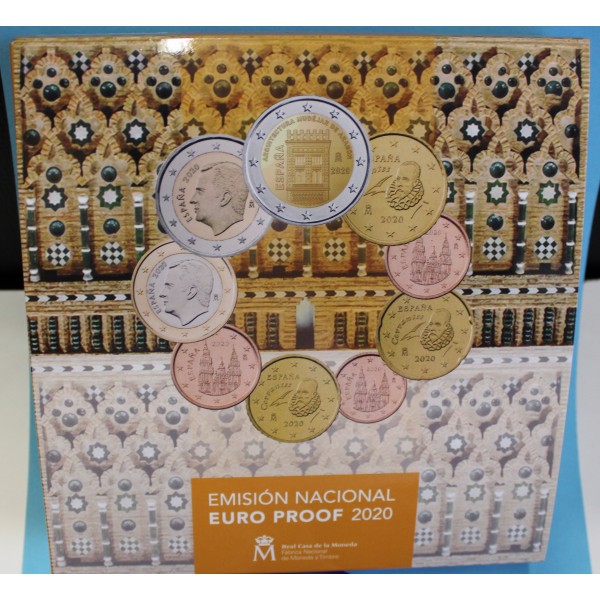 Coleccion de 9 monedas de España año 2020 valor en Euros en calidad Proof Monedas Euro set con capsula en Estuche Oficial Rey Felipe VI Valores 1 centimos - 2 Centimos- 5 Centimos - 10 centimos - 20 Centimos - 50 centimos + 1 euro - 2 euros + 1 moneda de 2 euros conmemorativos del estilo Mudejar Aragon - 9 monedas Proof con capsula y estuche oficial con certificado de la FABRICA NACIONAL DE MONEDA Y TIMBRE