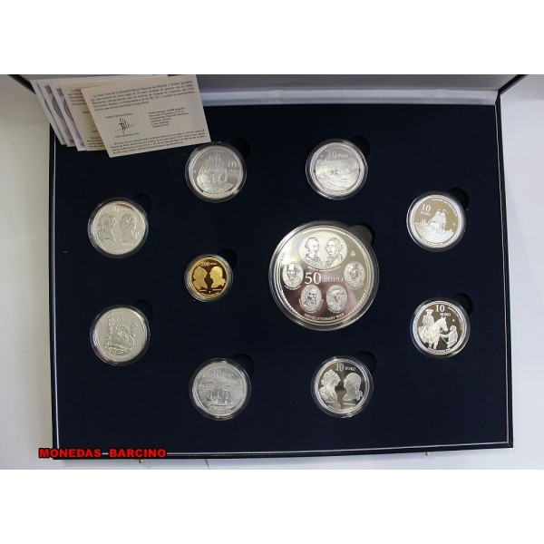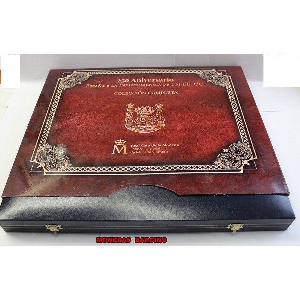 Coleccion de 10 Monedas de España año 2025-2026   rey Felipe VI de valores  8 monedas de 10  euros  de plata 925 mls.  8 reales silver. y 1 de 50 euros cincuentin. 1 oro 200 euros de oro 999 mls.  10 Monedas Conmemorativas  del 250 aniversario España y la independencia de los Estados Unidos 1776-2026. Incluye libro 1776 We the Hispanics.   calidad de las monedas Proof  Las Monedas Presentadas con  capsula en estuche y certificado Oficial F.N.M.T  fabrica Nacional Moneda y Timbre