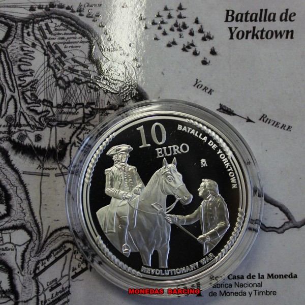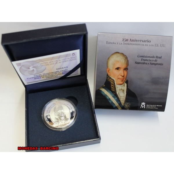 Moneda de España año 2026 rey Felipe VI de valor 10 euros de plata 925 mls. 8 reales silver. Moneda Conmemorativa de la serie 250 aniversario de la Independencia de Estados Unidos- Moneda del Comisionado Real Francisco de Saavedra y Sangronis en el Reverso Batalla de Yorktown. La Moneda Proof con estuche capsula y certificado Oficial.- Real casa de la Moneda. F.N.M.T fabrica Nacional Moneda y Timbre