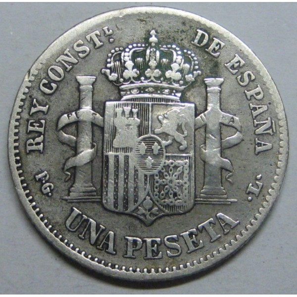 Moneda de España Rey Alfonso XIII. ceca Madrid de valor 1 una peseta de Plata . año 1893. PGL. imagen original fotografiada