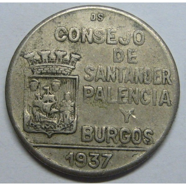 Monedas de España del Consejo de Santander Palencia y Burgos año 1937  de Valor  1 peseta, monedas de necesidad guerra civil .CIVIL WAR SPAIN - .   Imagen original  fotografiada.