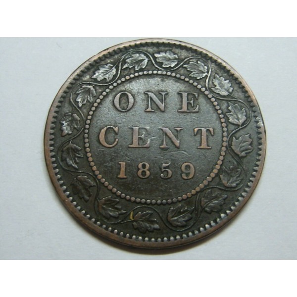 Moneda de canada año 1859 de valor one 1 cent de Bronce . moneda de la reina Victoria regina WIDE 9/8 LARGE . la moneda de la imagen fotografiada