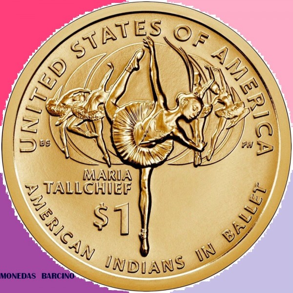 Moneda de Estados unidos de America año 2023 USA de valor 1 Dolar Moneda conmemorativa de la bailarina Marina Tallchief - Innovation letra P Philadelfia en el reverso esta la Estatua de la libertad de america. Conservacion: nueva sin circular metal bronce diametro 25mm.
