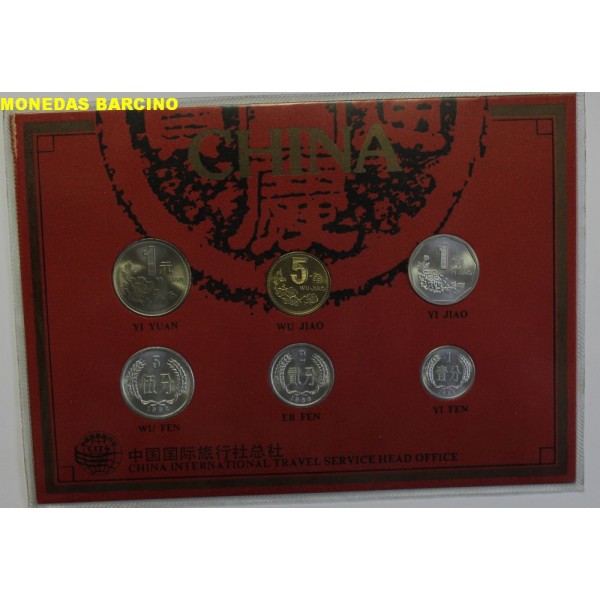 1989- CHINA - 6 MONEDAS- YUAN- JIAO- FEN- TRAVEL