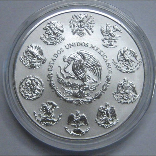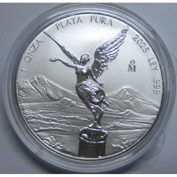 Moneda de Mexico estados Unidos Mexicanos año 2025 de valor 1 Onza plata pura 999 mls. Liberty silver Bullion coins. calidad Proof Inverso. moneda con capsula.