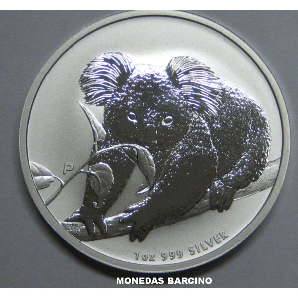 Moneda de Australia año 2010 de valor 1 dollar silver 1 onza de plata fina 999. Moneda conmemorativa del Koala de Australia . Reina Elizabeth II. The perth mint Australia moneda con capsula nueva sin circular