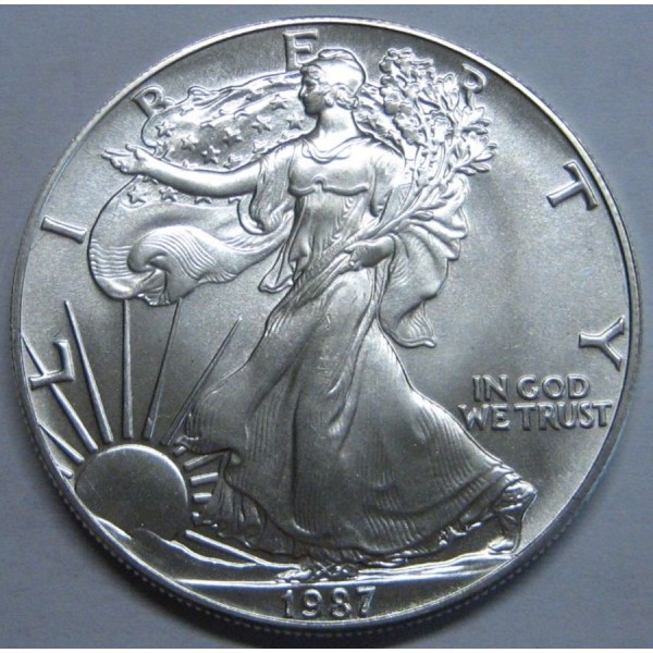 Moneda de Estados Unidos de America año 1987 Usa . Moneda Commemorativa de Liberty Bullion Coins Moneda de Valor 1 dollar de plata 999. Onza silver. American Eagle sin circular