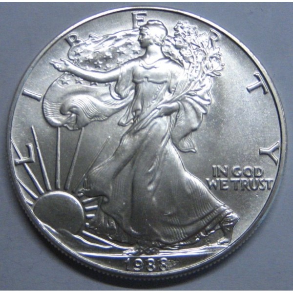 Moneda de Estados Unidos de America año 1988 Usa . Moneda Commemorativa de Liberty Bullion Coins de Valor 1 onza Troy 1 dollar de plata American Eagle ley Plata silver Peso: 31,1010 grs. - Diametro: 41 mm. conservacion sin circular clasificacion ANV. KM-273 DESIGNER: ADOLPH A. WEINMAN