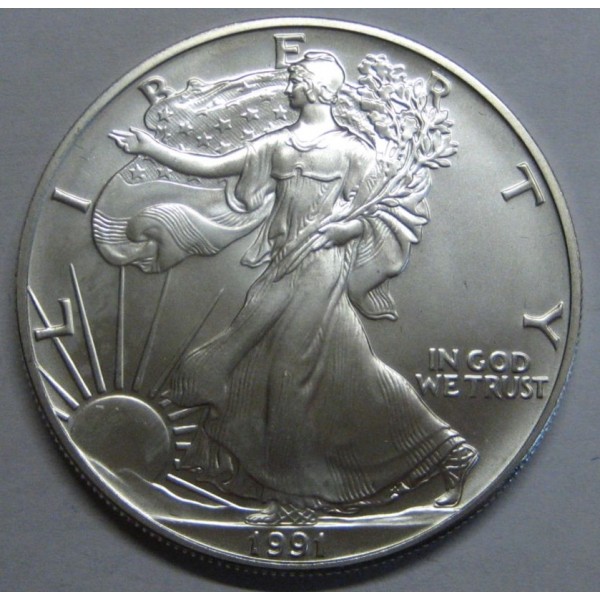 Moneda de Estados Unidos de America año 1991 Usa . Moneda Commemorativa de Liberty Bullion Coins de valor 1 dollar de plata Onza Troy silver American Eagle conservacion (sin circular) leves manchas