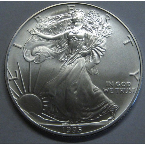 Moneda de Estados Unidos de America año 1995 Usa . Moneda Commemorativa de Liberty Bullion Coins Moneda de Valor onza Troy 1 dollar de plata 999. American Eagle conservacion ( sin circular ) leves manchas