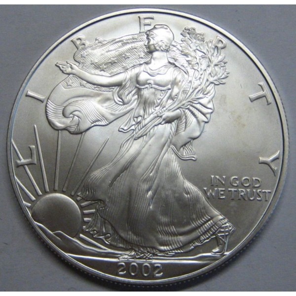 Moneda de ESTADOS UNIDOS de AMERICA año 2002 USA de valor 1 dollar silver. onza troy de plata 999. American EAGLE LIBERTY bullion coins. conservacion sin circular leves sombras. ver imagenes fotografiadas
