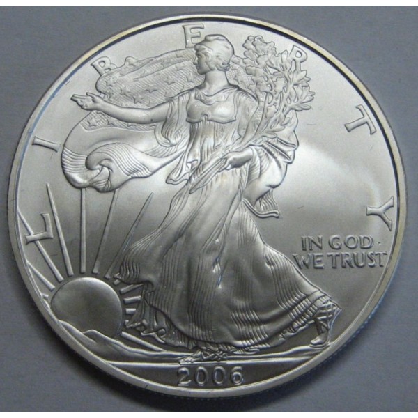 Moneda de Estados Unidos de america año 2006 Usa . Moneda Liberty Bullion Coins de Valor 1 onza Troy 1 dollar de plata American Eagle Monedas nuevas sin circular Leves sombras.