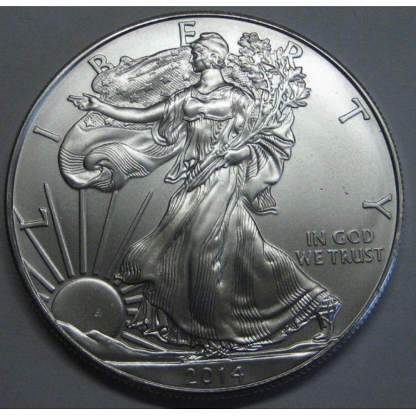 Moneda de Estados Unidos de America año 2014 Usa . Moneda Commemorativa de Liberty Bullion Coinsde Valor 1 onza Troy 1 dollar de plata American Eagle Monedas nuevas ( sin circular ) Leves roces.