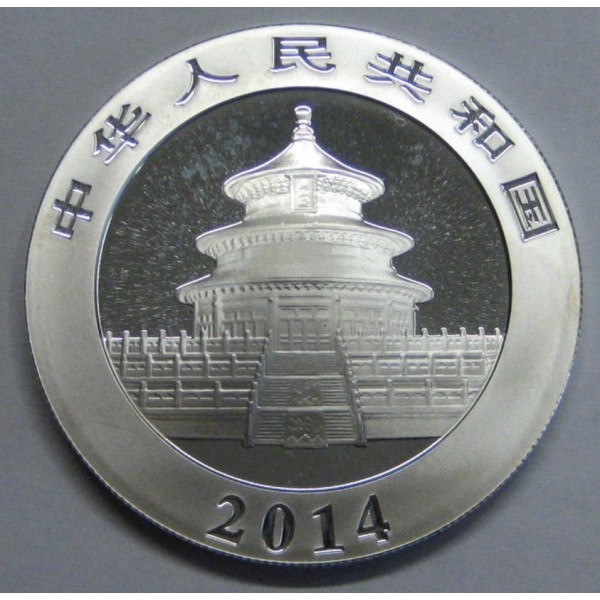 Moneda de China año 2014 de valor 10 YUAN tipo Onza de plata 999 milesimas Moneda conmemorativa del OSO Panda de china. Oso Panda y bambu. Moneda con capsula (sin circular) Leves manchas.