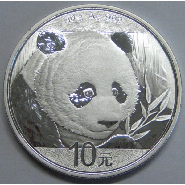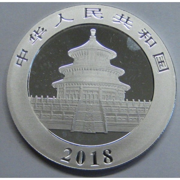 Moneda de China año 2018 de valor 10 yuan tipo Onza de plata 999 milesimas. Moneda conmemorativa del Oso Panda Moneda con capsula. calidad (sin circular ) leves manchas.