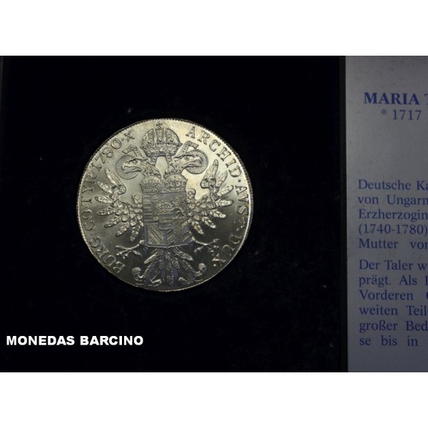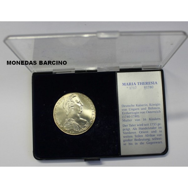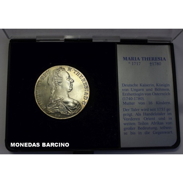 Moneda de la republica de Austria 1 Coin Osterreich AUSTRIA de valor THALER Trade Coinage Restrike reacuñacion oficial Moneda Conmemorativa de Maria Teresa de Austria . conservacion sin circular-. Con Estuche.