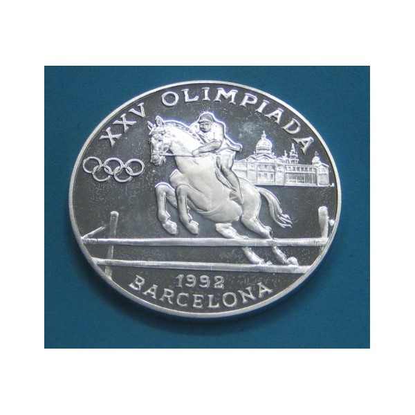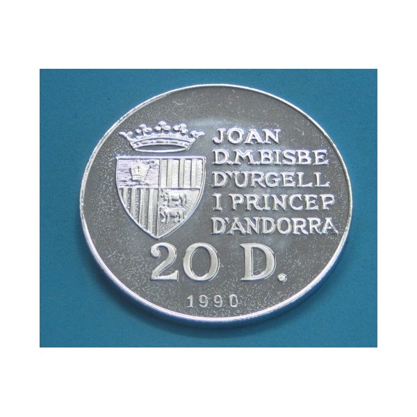 Moneda del Principado de Andorra año 1990 de Valor 20 Diners de plata 925 mls. Moneda conmemorativa Juegos Olimpicos Barcelona 1992 Equitacion JOAN D.M. BISBE DE URGELL Y PRINCIPE DE ANDORRA .
