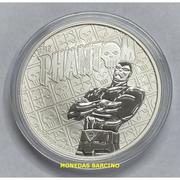 Moneda de Tuvalu año 2022 de valor 1 dollar onza de silver Moneda conmemorativa de The Phantom ,reina Elizabeth II .ley silver Plata 999 milesimas sin circular con capsula .