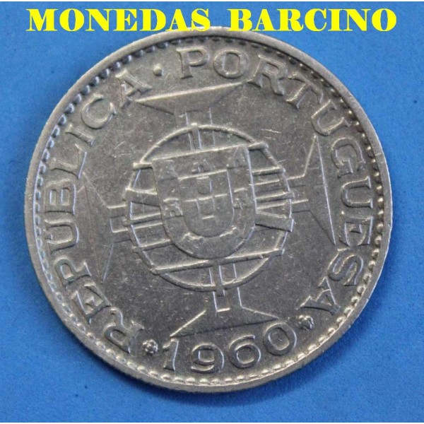 Moneda de Mozambique año 1960 de valor 20 escudos de plata 720 mls. Moneda de la republica portuguesa colonia Portuguesa. conservacion MBC. Ver imagenes. peso 10gr. 30mm