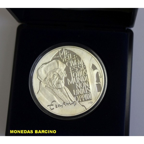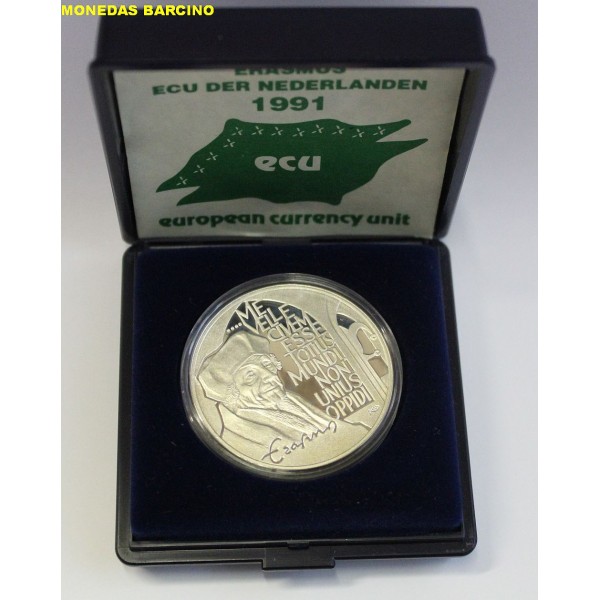 Moneda de los PAISES BAJOS HOLANDA de valor 25 ecu de Plata 925 mls. año 1992 Moneda conmemorativa de Erasmus. de Europa NEDERLANDEN Moneda con capsula estuche y Certificado oficial, calidad Proof. ver la imagenes fotografiadas.