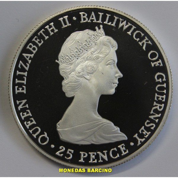 1980- GUERNSEY -25 PENCE -QUEEN ELIZABETH- PLATA