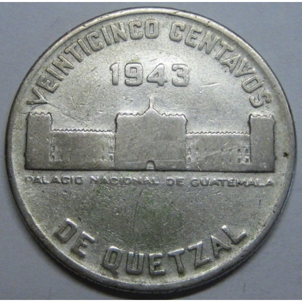 Moneda 25 centavos de Quetzal. Republica de Guatemala. imagen Original Fotografiada