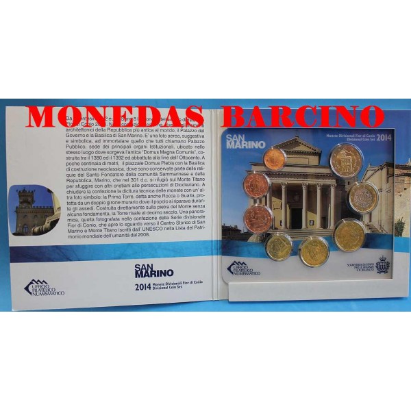 Monedas de la Republica de SAN MARINO año 2014 de valores Euros coleccion de 8 Monedas de valores 2 euros - 1 euro - 50 centimos - 20 centimos - 10 centimos - 5 centimos- 2 centimos- 1 centimo- Monedas sin circular en blister oficial - MONETE DIVISIONALI FLOR DI CONIO