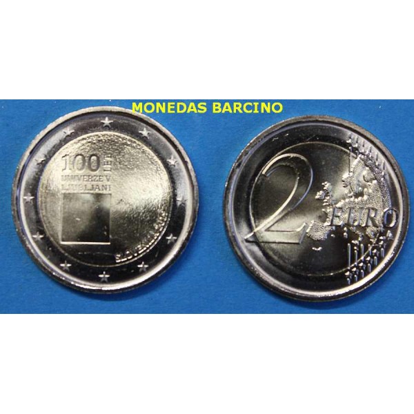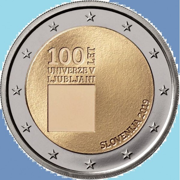 Moneda de ESLOVENIA año 2019 de valor facial 2 Euros conmemorativos del aniversario de la UNIVERSIDAD LJUBLIANA de Slovenija euros de europa moneda sin circular directa de cartucho