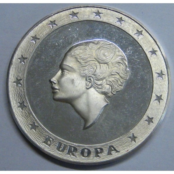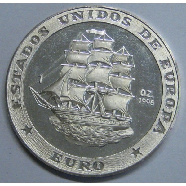 Moneda de España año 1996 de valor euro . 1 onza de plata Pura 999mls. Moneda conmemorativa de los Estados Unidos de España. Barco. reverso Europa. conservacion ( Sin circular ) brillo. leve marquita canto.